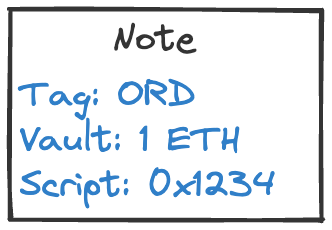 Tagcan be listed in the same order book. Notes carry the asset to sell in theirVault- this cannot be updated, and in this example, it is 1 ETH. In addition, Notes have a single executableScript. This script is the root of a Miden program MAST. Here is where we can encode our order. For example,0x1234can meanWhoever wants to take this order needs to consume the above note and, in doing so, execute the script. Like this, we can pretty easily support limit orders, where limits can be updated nearly instantaneously in one direction.
