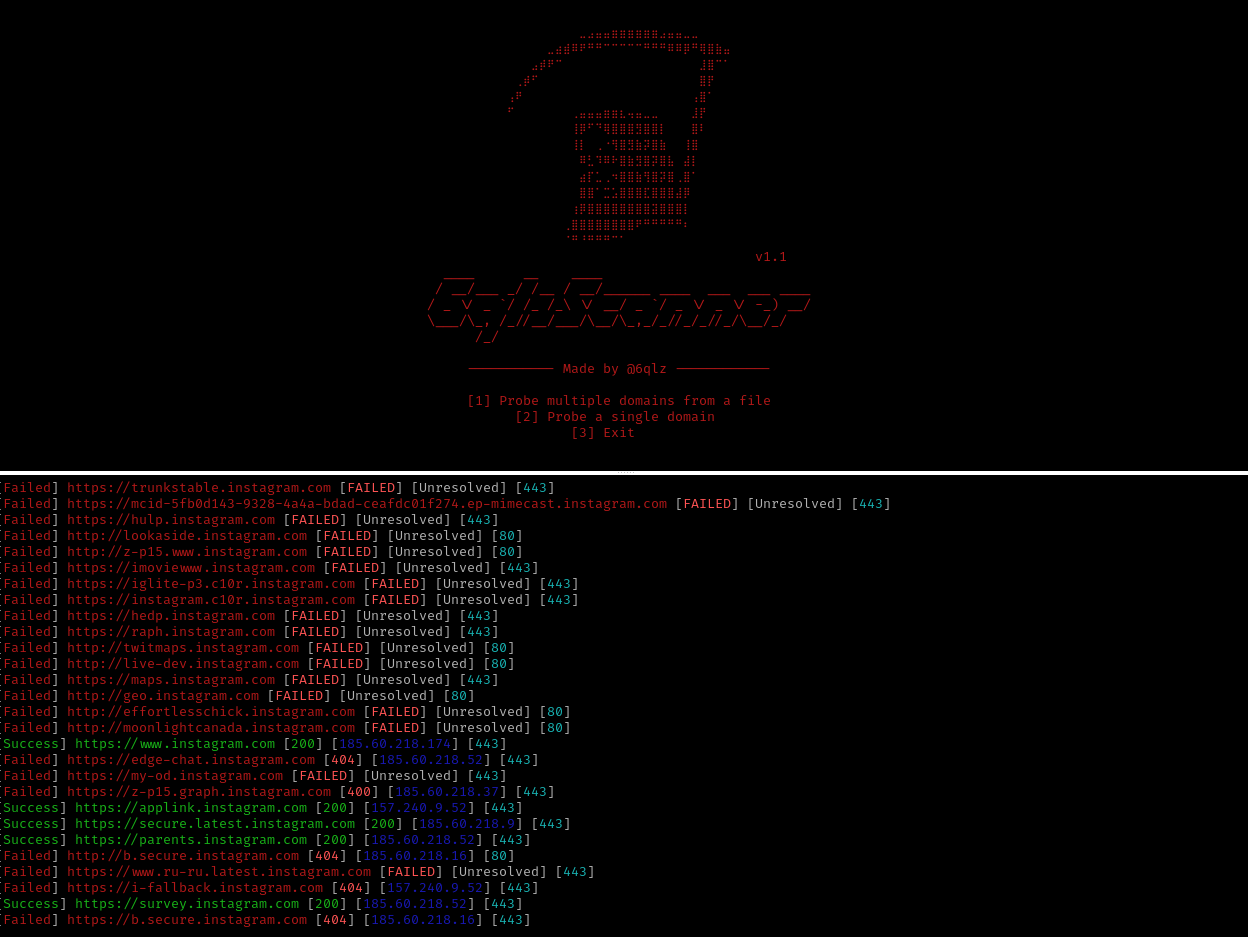 A high-performance, multithreaded domain reconnaissance tool crafted for security professionals who demand efficiency and precision. With intelligent automation, it swiftly probes domains, identifies web technologies, and presents results in an elegant, color-coded format. Designed for seamless large-scale scanning, 6qlzScanner combines power and sophistication to elevate your reconnaissance workflow.