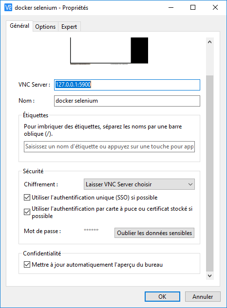 Pour visualiser les tests Selenium, installez VNC Viewer.