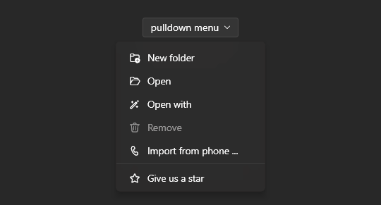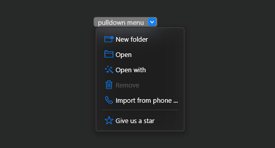 ),A pull-down menu button is used to create a nice overlay on the screen, allowing the user to select an item from multiple options.