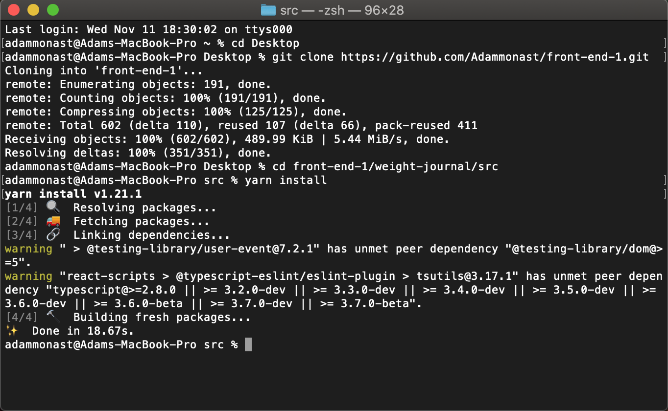 npm installIf those steps were followed correctly, your terminal should look like something like this: