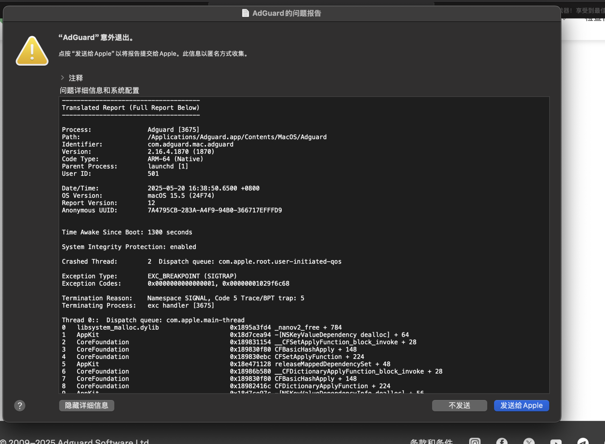 11 Adguard 0x102d31e7c 0x1029d8000 + 3513980