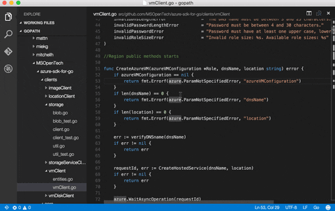 In a terminal window with the GOPATH environment variable set to the GOPATH you want to work on, launch code. Open your GOPATH folder or any subfolder you want to work on, then open a .go file to start editing. You should see Analysis Tools Missing in the bottom right, clicking this will offer to install all of the Go tooling needed for the extension to support its full feature set. See the Tools section below for more details.