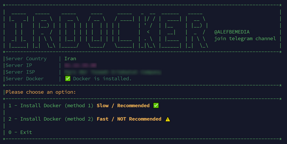 bash <(curl -Ls https://raw.githubusercontent.com/AlefbeMedia/irDocker/main/install.sh)