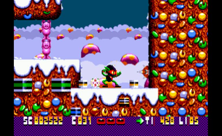 To show a more relevant example to how a new HUD fits a higher resolution on a retro game from the 90s, the recently released Zool Redimensioned can be a good example of how that's done right. The image below is Zool on the Sega Mega Drive / Genesis.