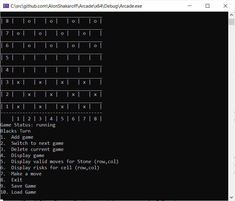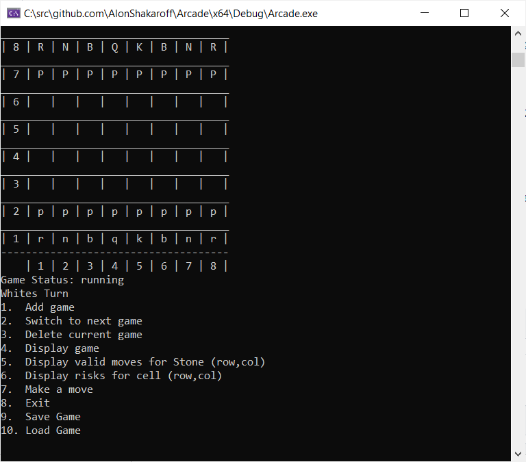 Board game arcade with the ability to run Chess, Checkers, and Amazons game. The software was written as part of an object-oriented development course in C++ at the Academic College of Tel Aviv Yaffo.