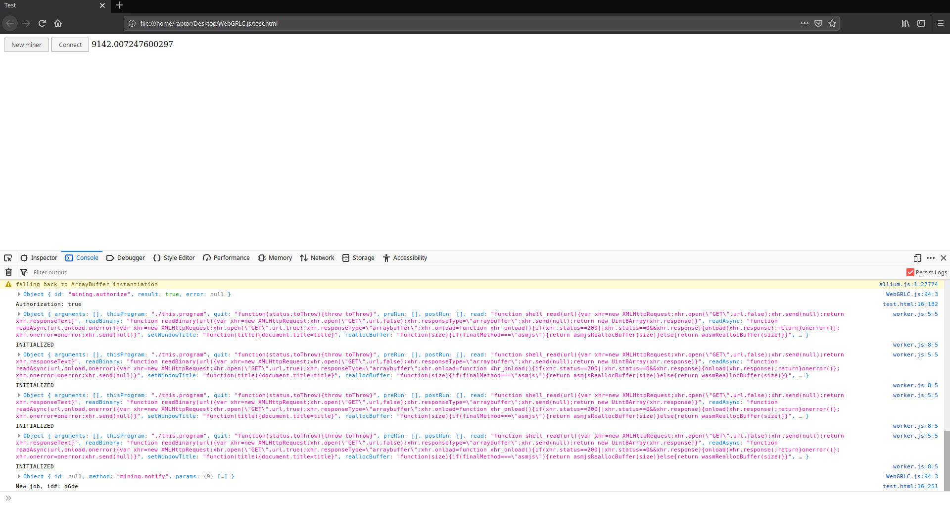 Now that we have our communications proxy up, deploy WebGRLC.js, allium.js, allium.wasm, test.html, and worker.js to your webserver.