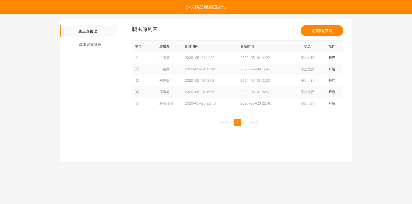 开启按钮,开始爬取小说数据。