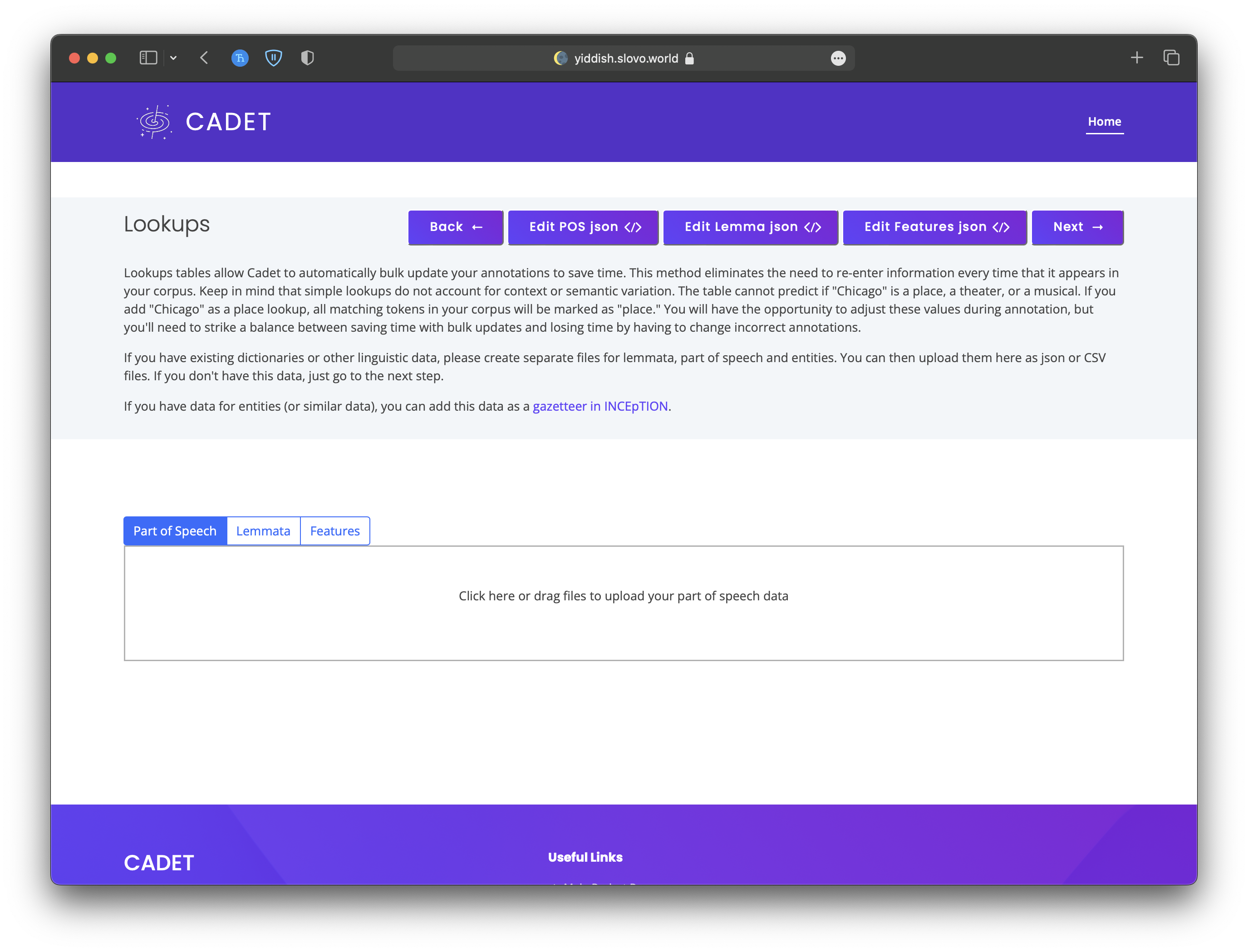 Cadet is a web app for creating custom language objects for spaCy.
