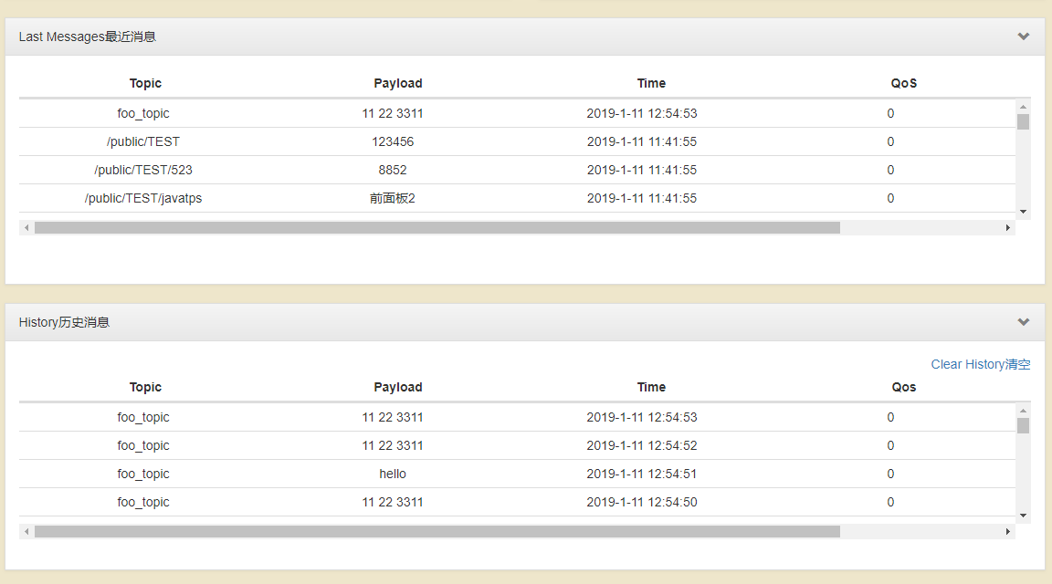 你也可以直接在网上进行测试体验 MQTT 服务,订阅自己的主题信息和发送自己的主题信息。