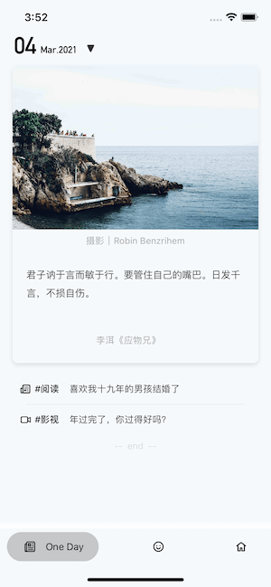 每日推荐一张图,一句话,一篇文章等。数据来源自:One。