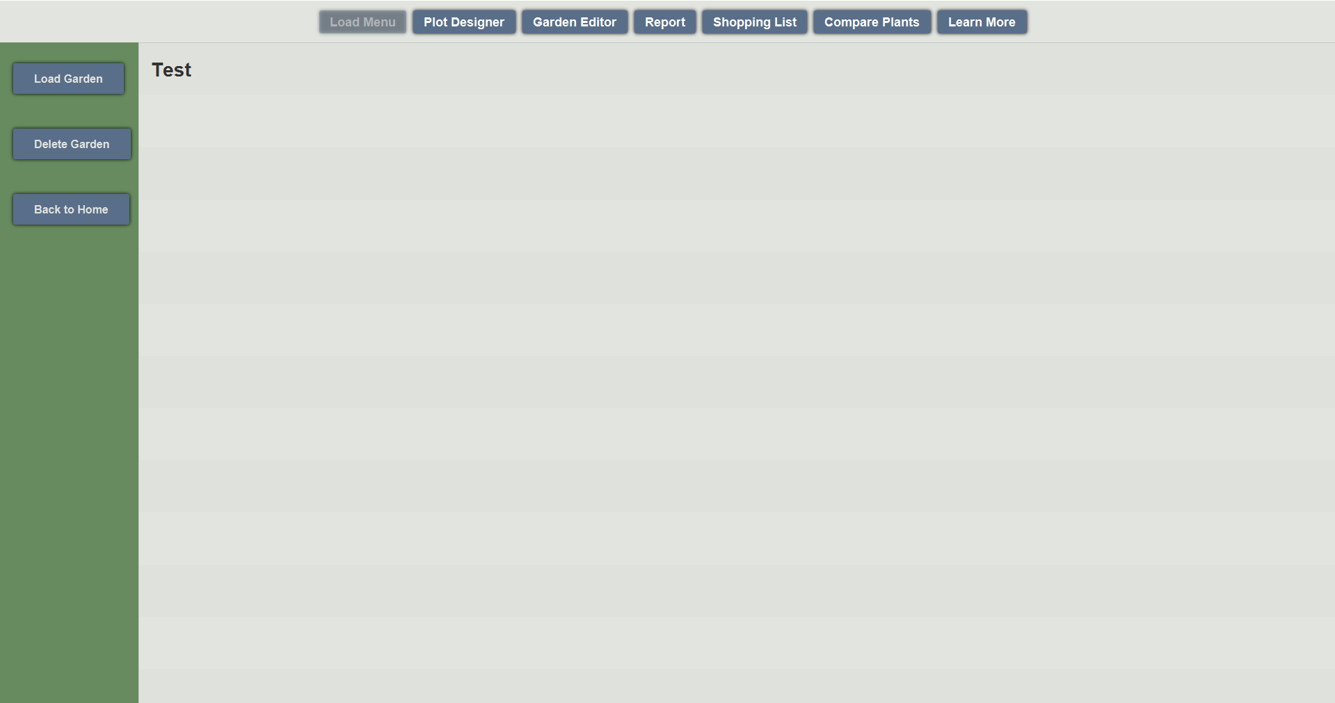 In the load garden menu, a list of saved gardens will be displayed. To load a garden, a user can select their desired garden, then press the load garden button. Gardens can also be deleted by using the delete garden option.