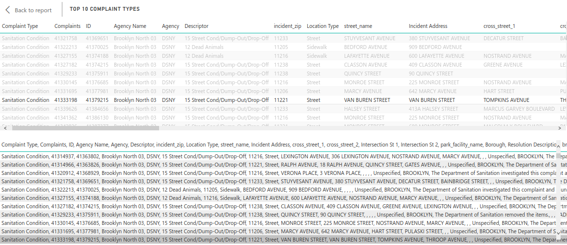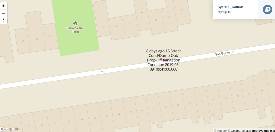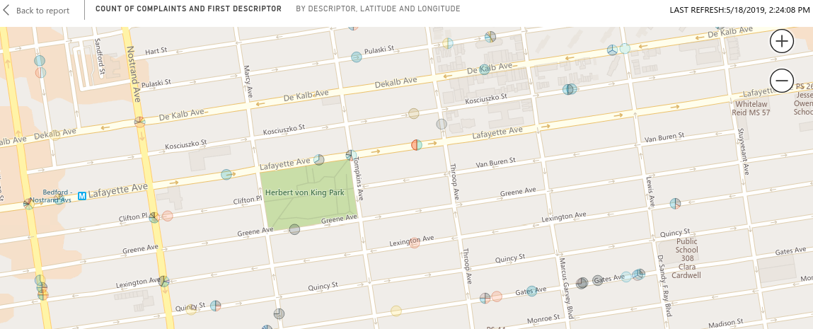 This shows the data mapped properly (in a completely separate application, as a sanity check) for recent complaints in a web page at map link