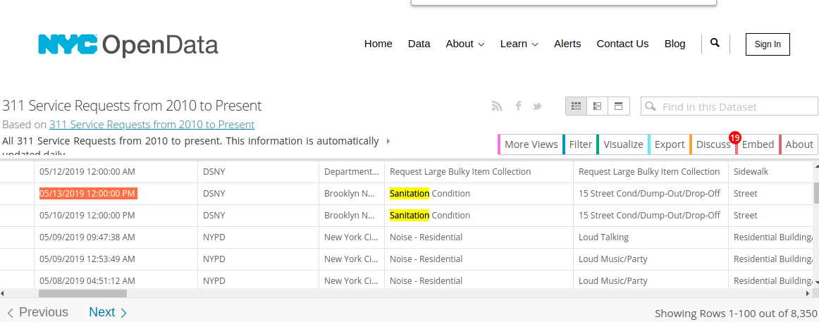 Here's the date shown in the current nyc taxpayer paid open data web site owned by socrata.com and its parent company.