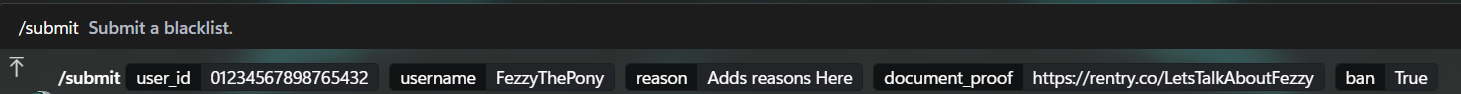 - The staff from a server submit the blacklist through the bot or directly in the support server.