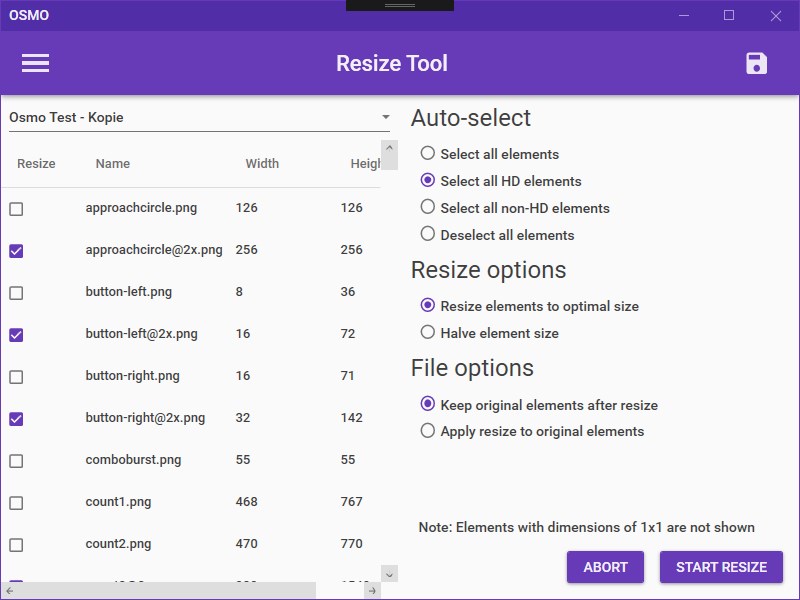- Skin element resize tool (for example create SD elements from HD elements)