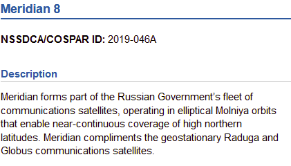 I just remembered this again because I had "Meridian 8" selected, opened NASA's page on it and then wanted to search for the mentioned "Raduga" in our app: