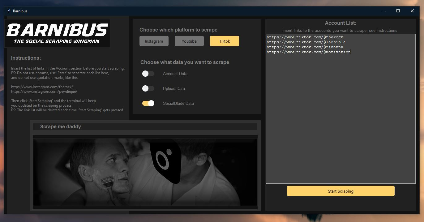 The goal of the project was this; create a platform that scrapes these three social medias: