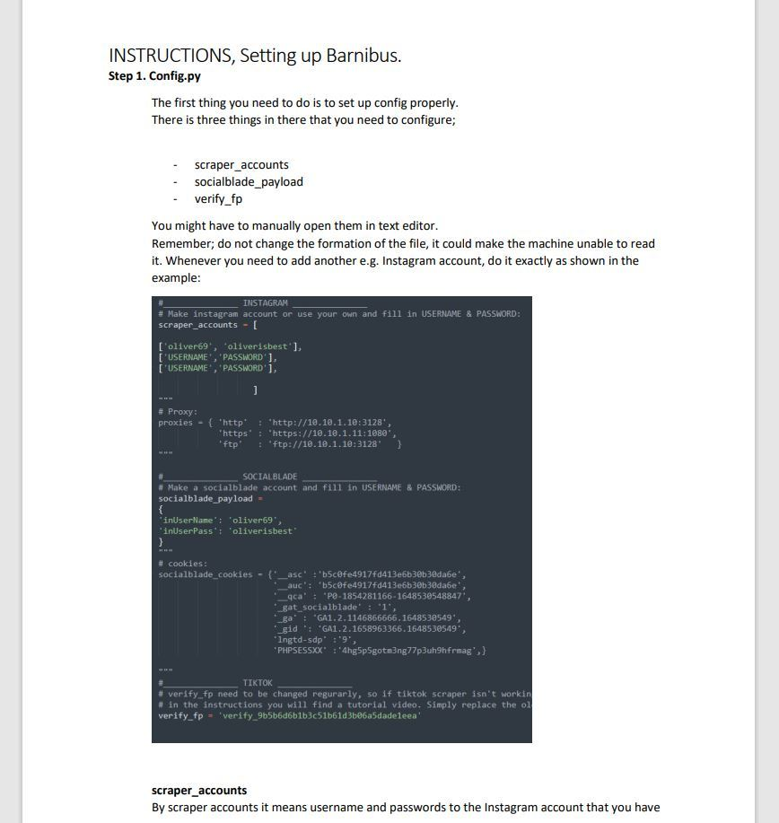 Since the social medias are using very different platforms, I had to use a different method for each of them. They were all challanging in their own way, but I found tiktok and Socialblade to be especially hard, due to security measurements such as catchpa and cloudflare. I dealt with cloudflare by implementing proxies, fake headers and a series of cookies to my requests. The catchpa however was a bit more difficult, I solved the issue by fetching the temporary verification-token, you recieve after solving the puzzle, which you can then add to the other cookies, gaining access.