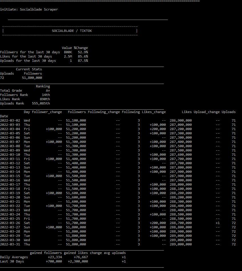- TikTok Additionally you would have the choice to scrape these types of data: