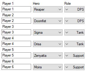 - If you have player information, enter their names, select the hero, and role under the corresponding team. Once you're done, click the Update button.