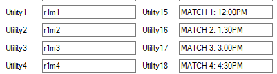 NOTE: If you want the Away scene to point to different matchups, you need to change Utility1-4 so it looks at the correct bracket matchup. See the chart in the Using the Tool > General Tab section above. Since Utility1-4 points towards the round 1 matches 1-4 (r1m1, r1m2, etc), the tool looks at the Round 1 matches in the Bracket tab.