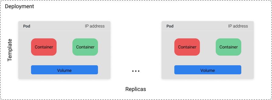 A Deployment object encompasses a collection of pods defined by a template and a replica count (how many copies of the template we want to run). You can either set a specific value for the replica count or use a separate Kubernetes resource (eg. a horizontal pod autoscaler) to control the replica count based on system metrics such as CPU utilization.