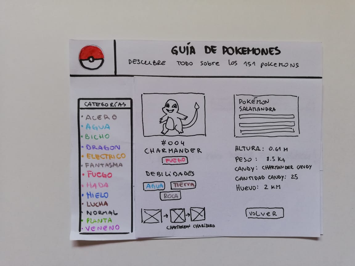"Guía de pokemones" es una página contenedora de todos los datos necesarios para ser un maestro pokémon. Contiene todas las características e información necesaria para usar en Pokémon GO de los 151 primeros pokemones de la región de Kanto. Puedes encontrar a los personajes mediante filtros (ordenar por número de pokedex, órden alfabético) o por categorías (agua, fuego, hielo, dragón, planta, veneno, etc). Es una web intuitiva y fácil de manejar. Sin necesidad de seguir instrucciones el usuario puede acceder a toda la información que contiene.
