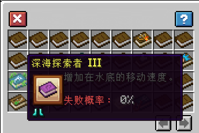 附魔失败机制 - 引入破损物品和物品修复系统,玩家使用附魔书时如果失败了,装备会破损,玩家可以花时间将破损的装备修复,增加附魔玩法深度。