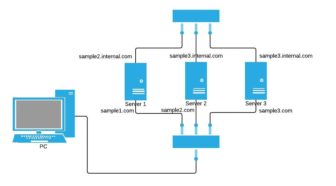 For example, gived following network configuration: server1, server2 and server3 talking with each other through internal network and the PC which running this tool connect to server1, server2 and server3 through the external network.