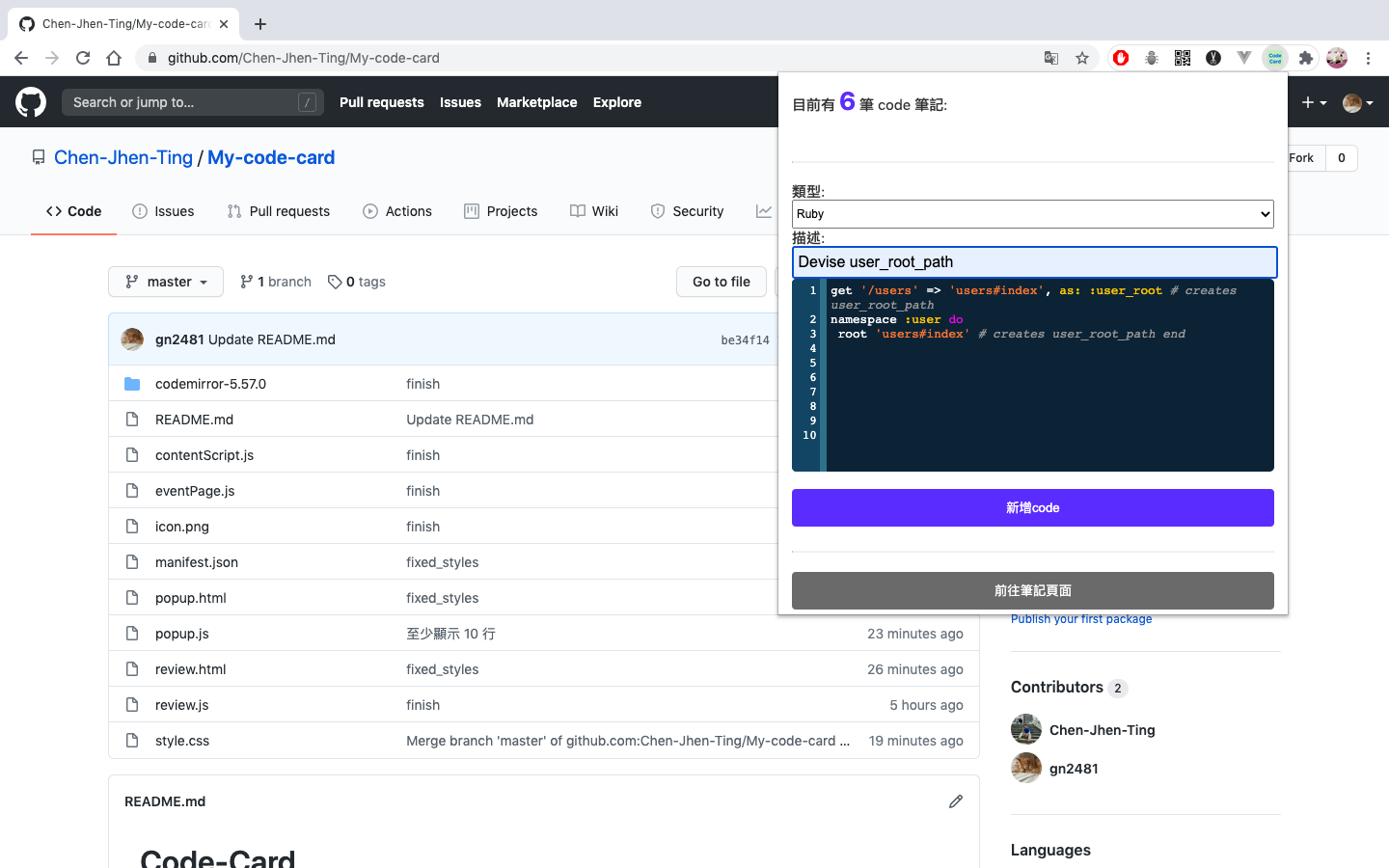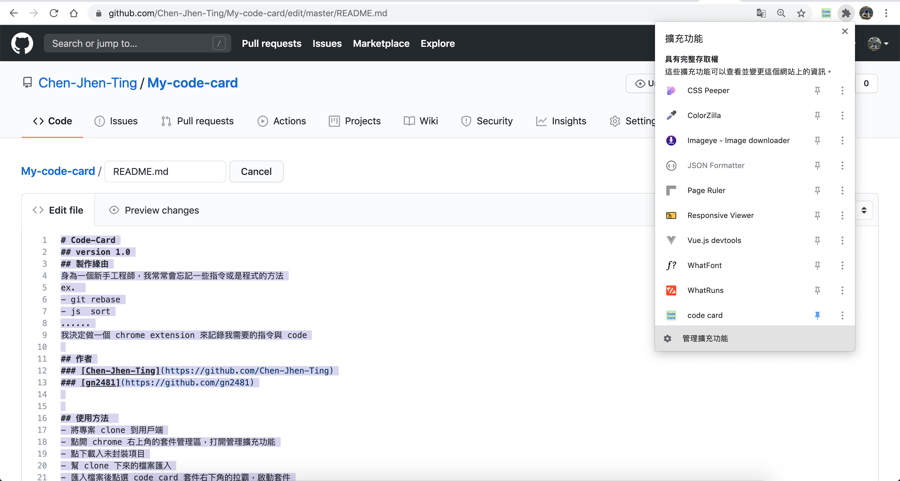 - 到 chrome 右上方點選 Code Card icon