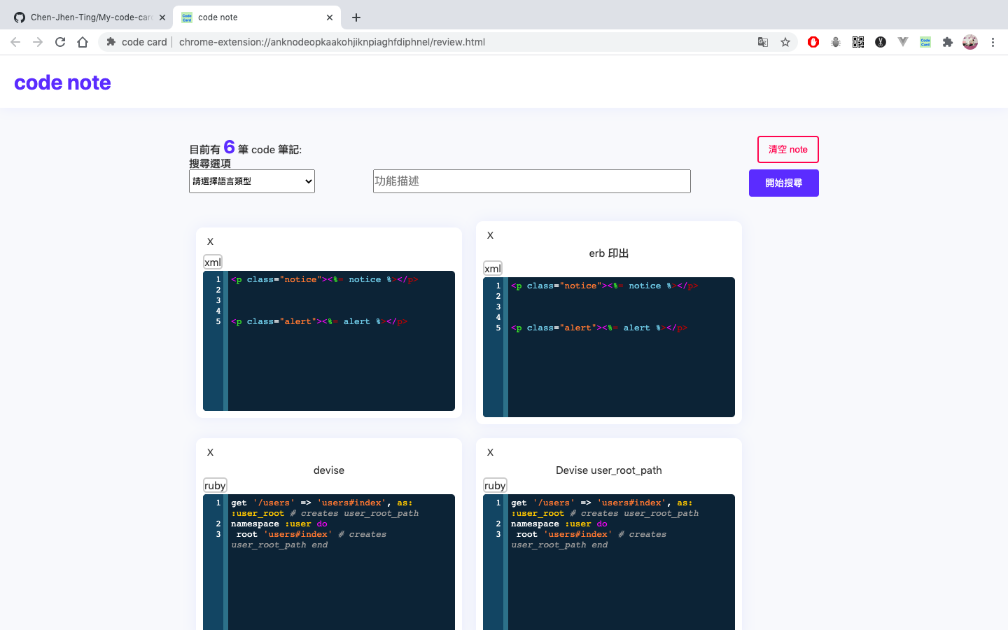 - 可在上方點選語言與輸入描述來尋找想要的筆記