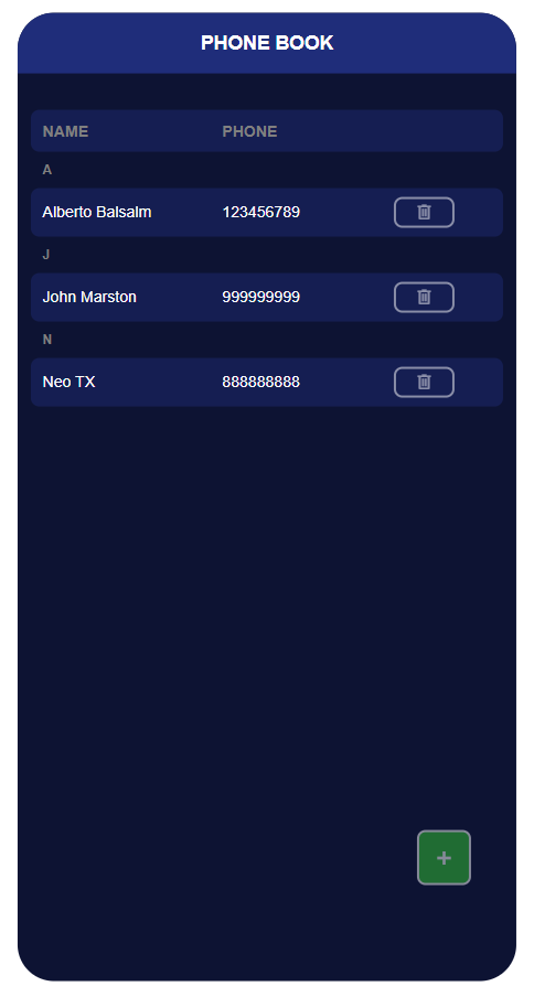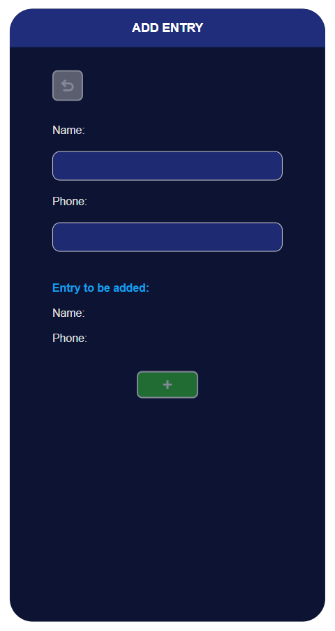- Add Contact: A dedicated screen to input new contact details (Name and Phone).