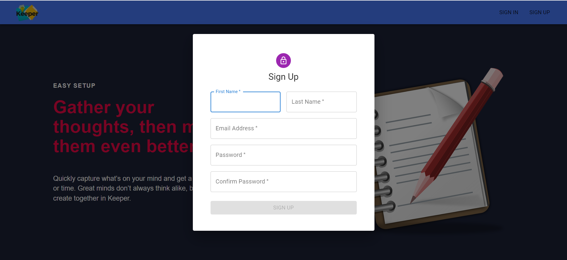 Keeper is a Note Taking Application. Application offers a variety of tools for taking notes including texts, lists. We have added a Login Functionality for security purposes. A user cannot access the application without Login. A user can create his own posts, edit and delete them. A user will be able to access his/her own posts only. In the upcoming updates we are planning to add more functionalities. We will implement pin posts, reminder updates, dark mode in future.