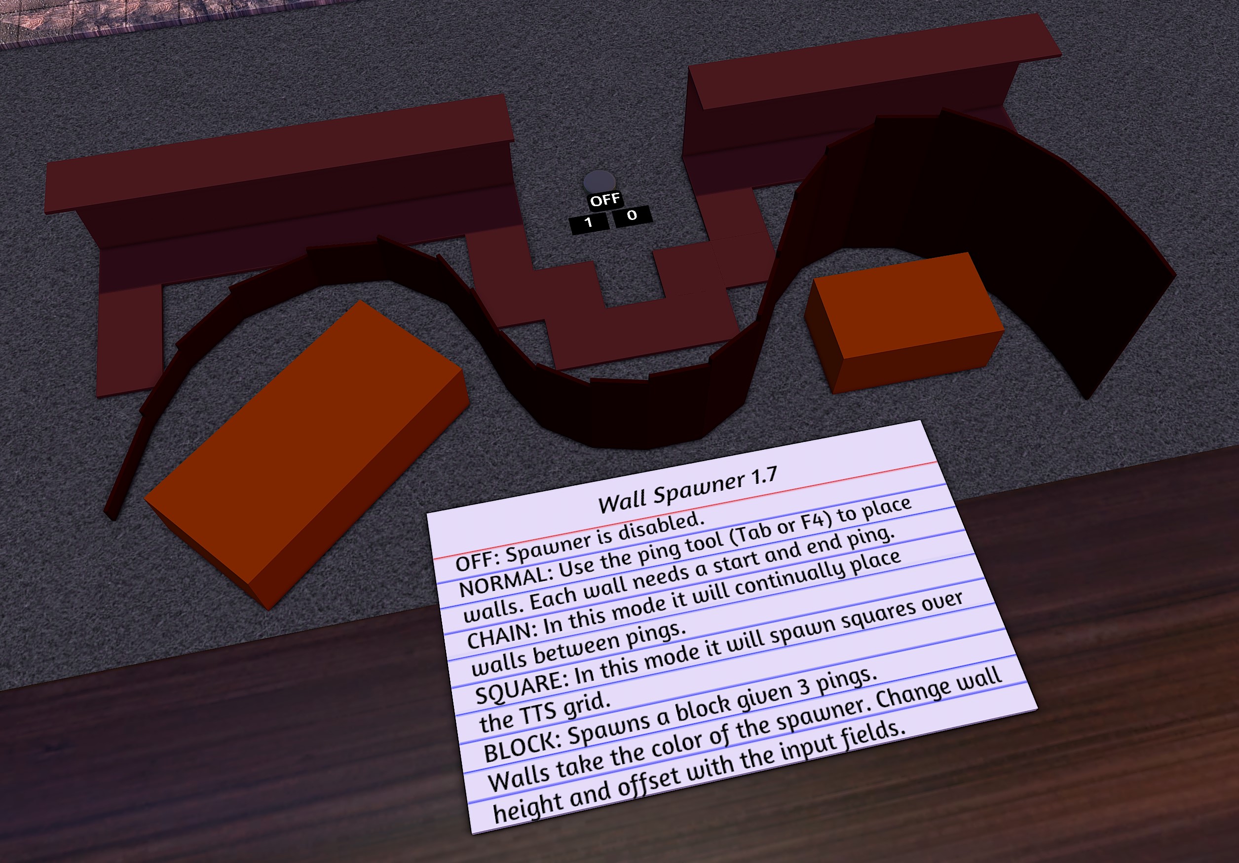 - Wall spawner with adjustable color, transparency, and height. Can also spawn floors and blocks to cover table areas.