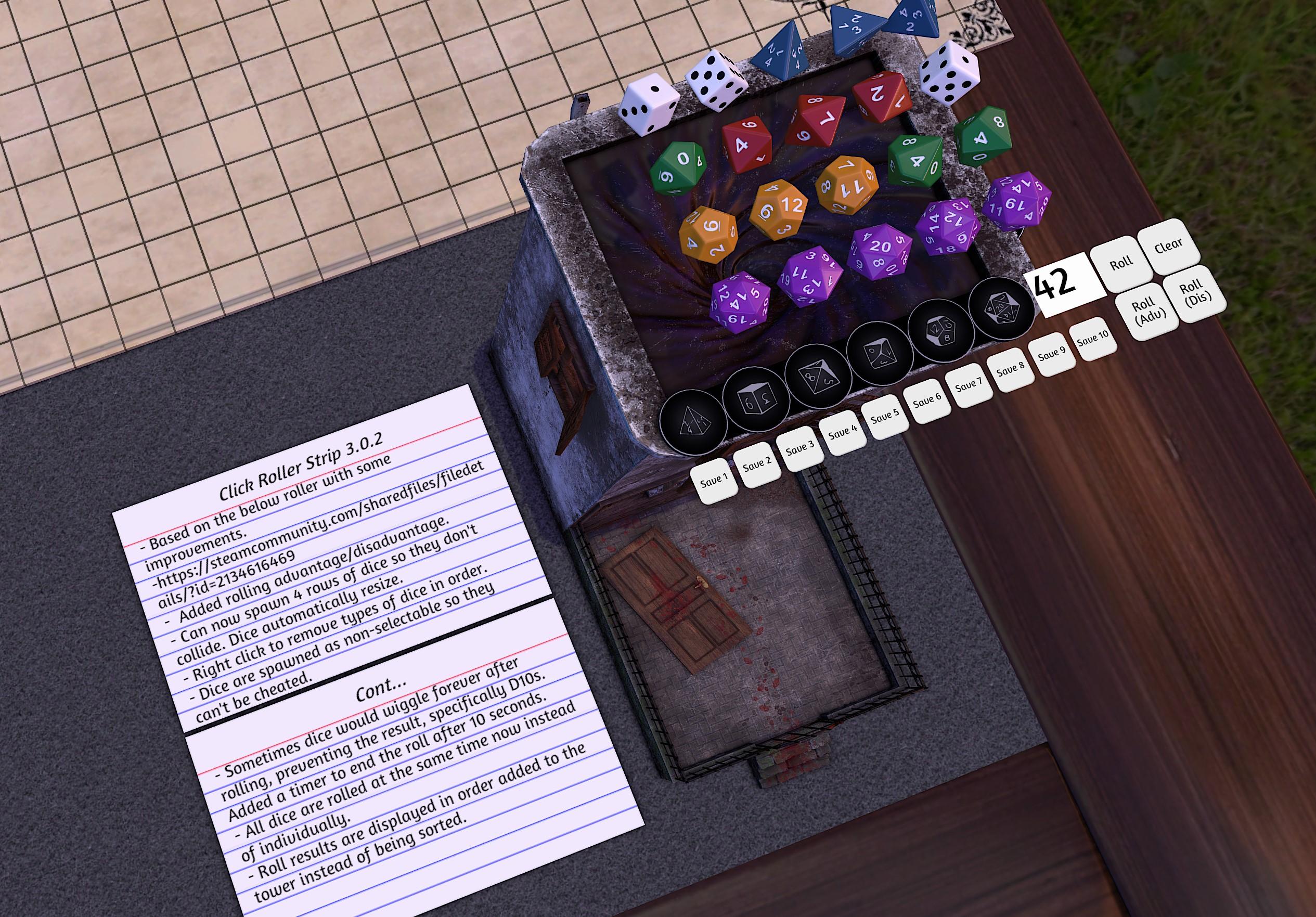 Code credit to the following workshops; their work has been built on for these tools: Centimeter Ruler / Self Measuring Movement Scripted Bases / HP Bar Writer / Condition (and spell) Tokens DnD 5e / Object Stabilizers / Miniature HUD Utility / Improved Dice Roller / Click Roller Strip / Saught's Spell AoE Hit Markers
