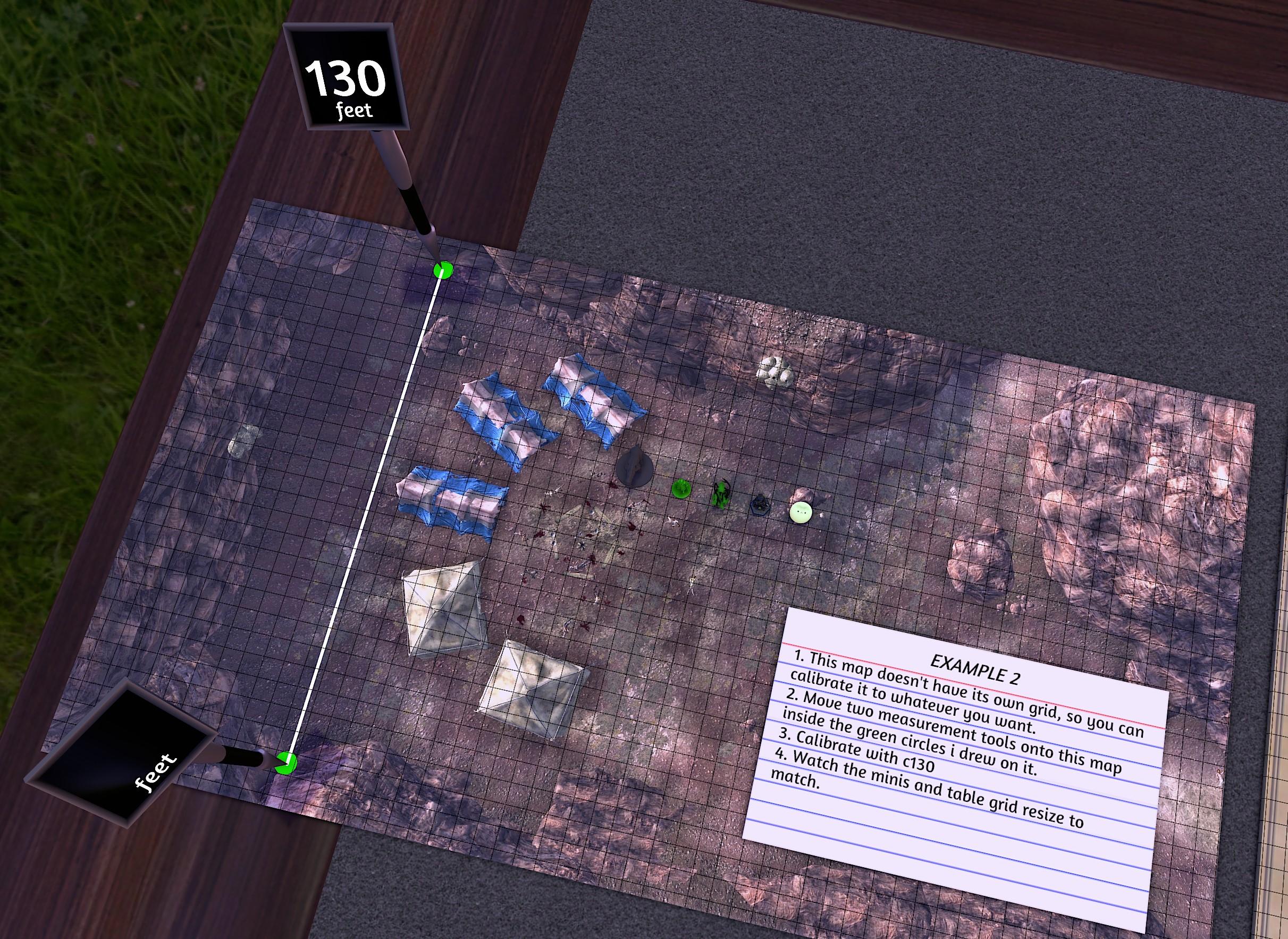 - It can calibrate the table's grid. Enable calibration in the right-click menu then set up a measurement. Enter how many feet the distance should be in that field and click away from it. Vertex mode will enable calibration between grid line intersections rather than grid square centers.