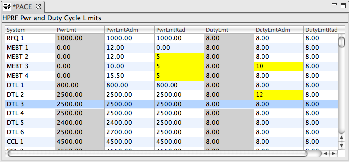 PACE displays a table of PVs, based on a configuration file. It's primary use is for editing important lists of PVs like PID loop gain settings or limits of instances of a system along the accelerator.