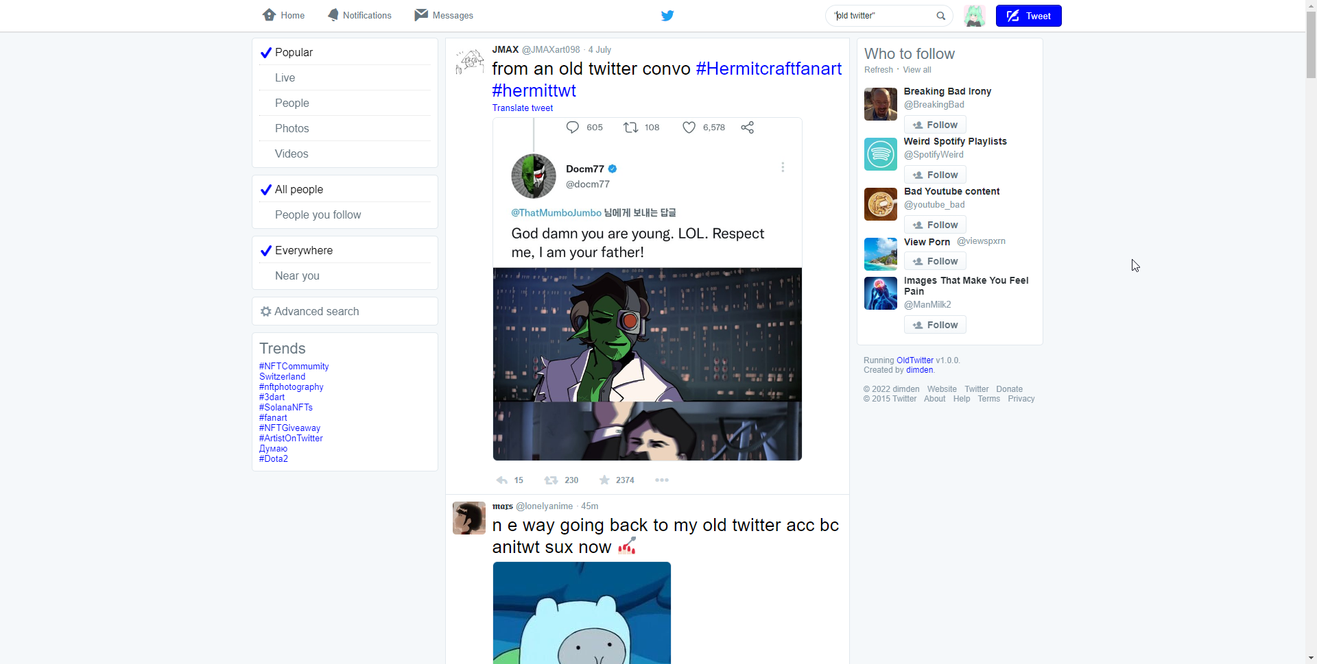 Browser extension to return old Twitter layout from 2015 (and option to use 2018 design).