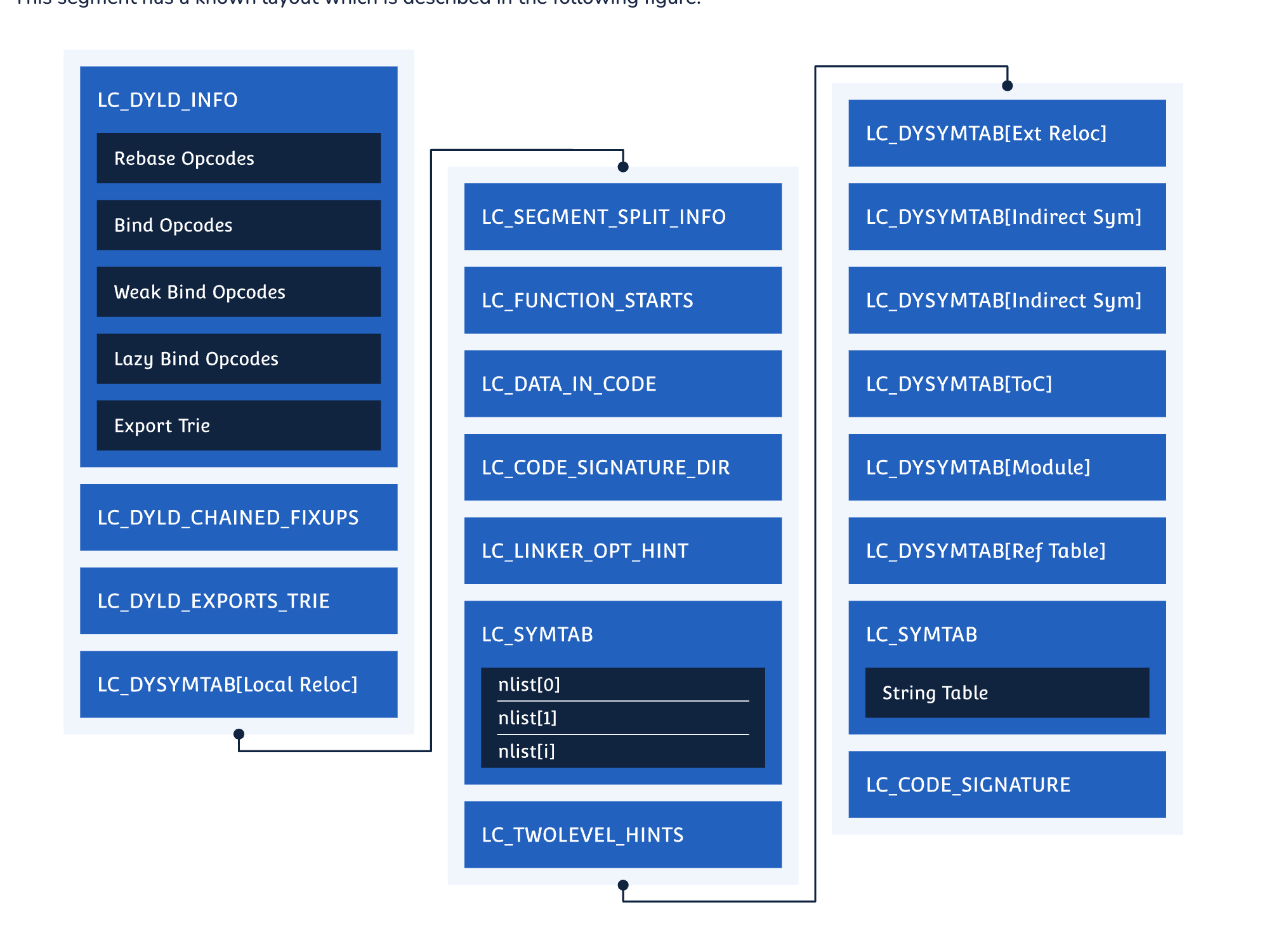 the one we are intersted in is exportTrie, as that one contains the debug information we need to extract