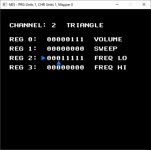 The pitch is plausibly correct on the triangle channel but there's a small amount of crackle whilst playing single notes.