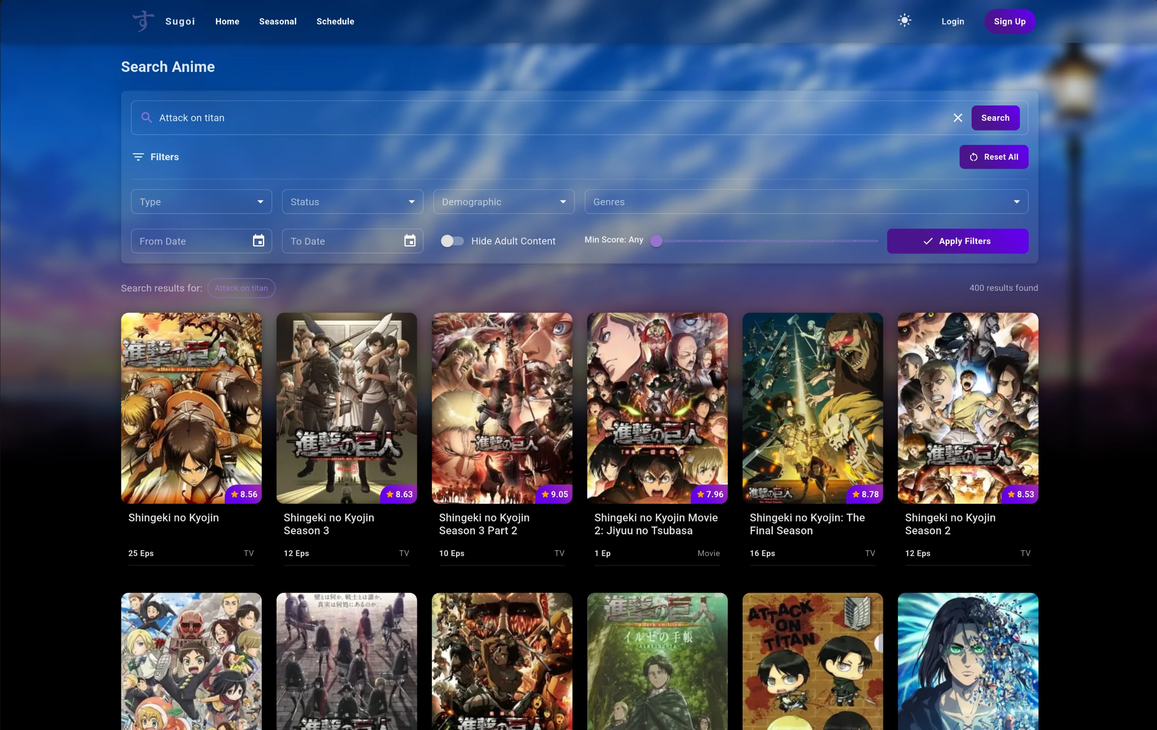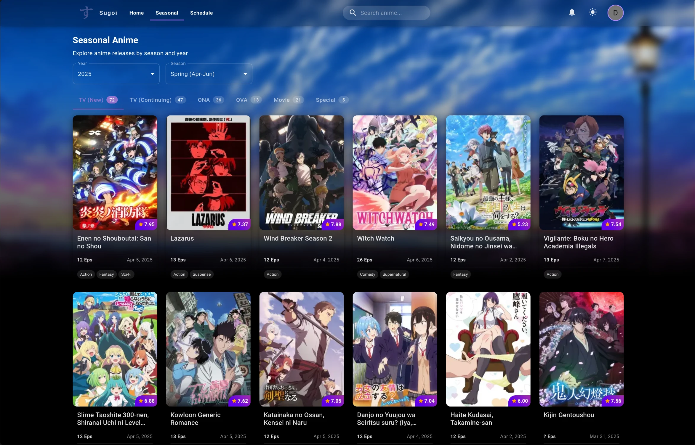 - Anime Discovery: Browse trending, seasonal, and featured anime