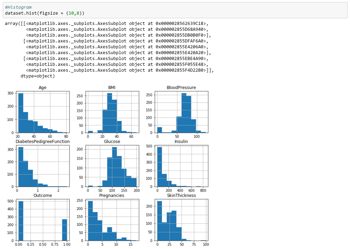 The datasets consists of several medical predictor variables and one target variable, Outcome. Predictor variables includes the number of pregnancies the patient has had, their BMI, insulin level, age, and so on.