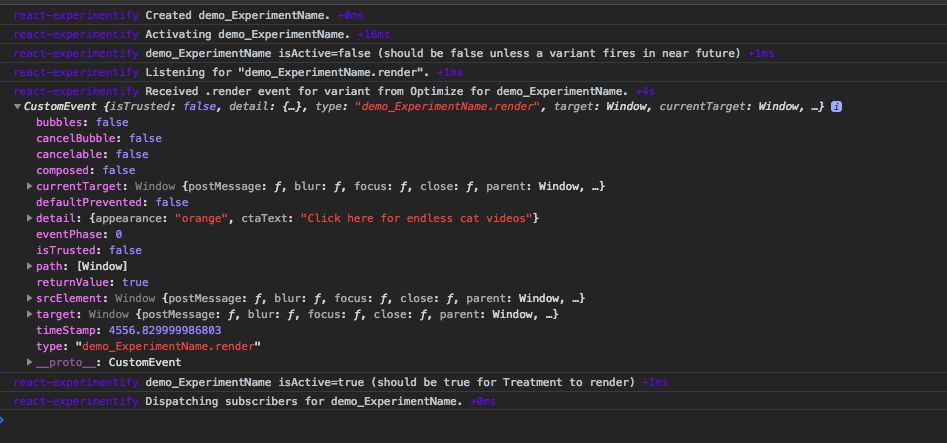 Yeh, it's not as common in the browser. I've used it in a complex spa where I can selectively enable debugging to see what the system is doing, eg localStorage.debug='containers*,system1,foo,bar' etc. and it gives nice coloured output and might complement a similar use of debug in the consumer of this component to allow us to trace failed variant activation.