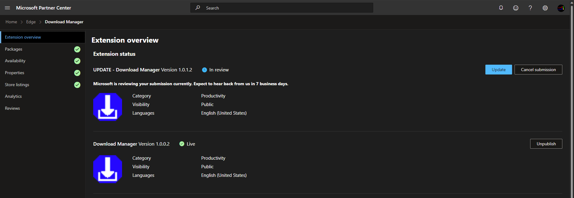 2 days ago the v4.0.1.1 update was released for Download Manager and the extension was sent to Microsoft to be reviewed and uploaded to the extension store.