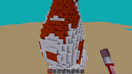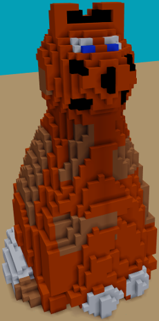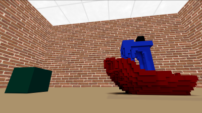 Painting a 3D printed cat in Minetest. Objects you create can be painted. The paint color can be selected by pressing I and clicking the 'Paint Color' button or by using the '/paint_color' command.
