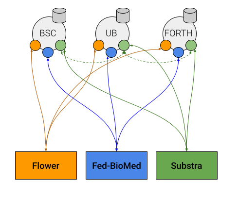 Nodes part of the federation are not necessarily the final Data Nodes of EUCAIM Data Federation, as for demonstration purposes, data in use here correspond to public datasets provided by the simulated FL experiments designed in this demonstrator.