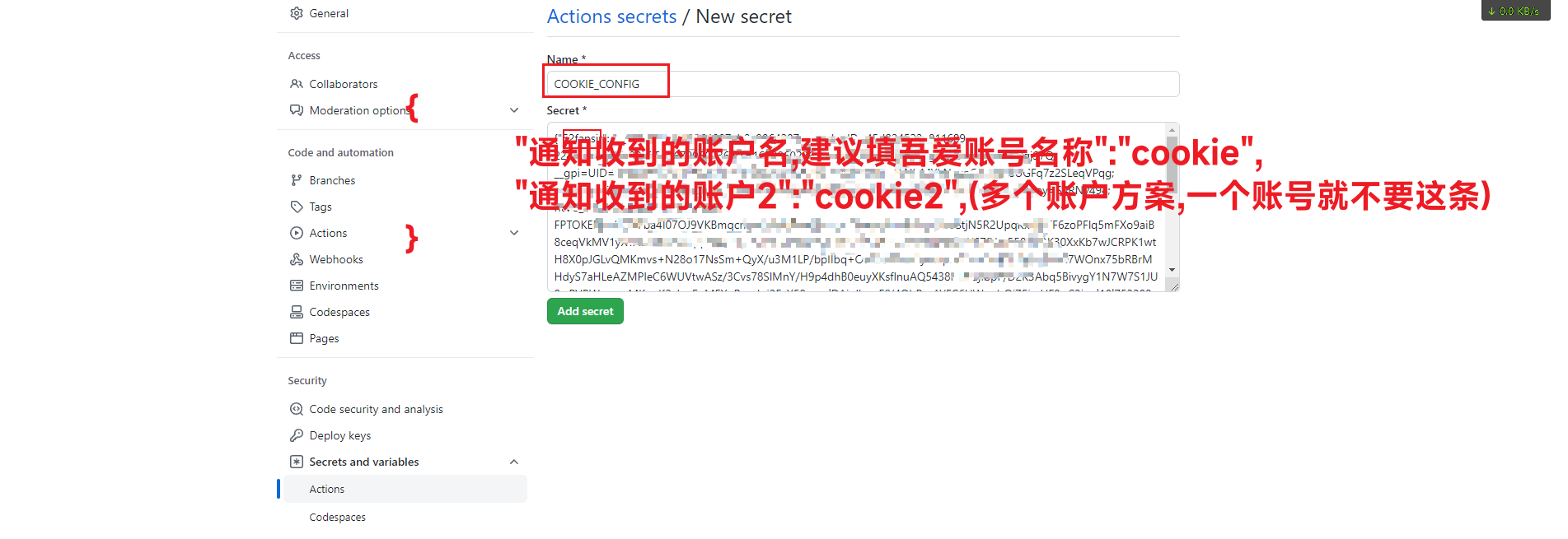 "自定义你的账户名2": "账号2cookie"