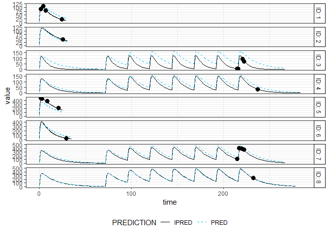 estX <- mapbayest(exmodel(ID = 1:8), verbose = FALSE, progress = FALSE)
