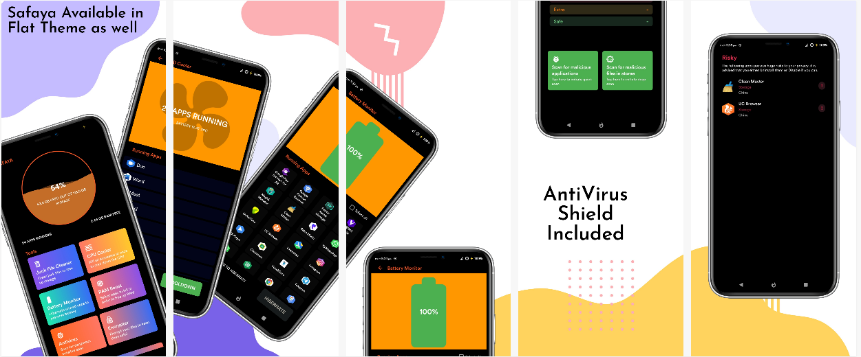 SAFAYA powered by FireHound is a simple one shot single light weight application which will help users to clean all sort of junk files including cache, logs, tmp files etc. SAFAYA also works as an Ad-ware detector and malware detector and deletes the applications flagged by Google Play Protect and Google Play Store.